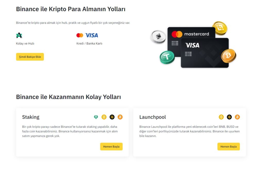 Binance: Banka/Kredi Kartı Kullanarak Kripto Satın Alın