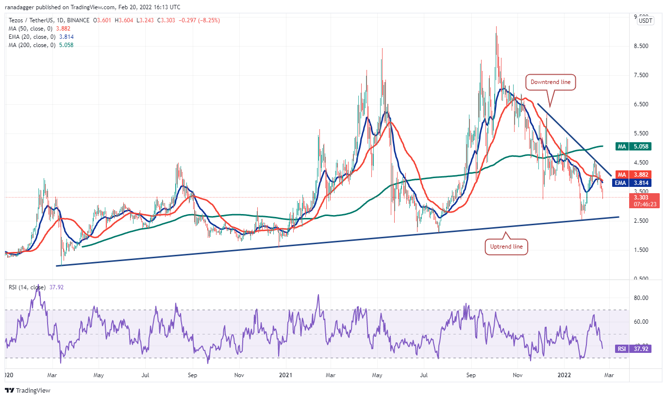 Tezos (XTZ), 10 Şubat’ta düşüş trendi çizgisinden aşağı döndü ve bu, ayıların hala satmaya devam ettiğini gösteriyor. Ayılar şimdi fiyatı yükseliş çizgisine çekmeye çalışacak.